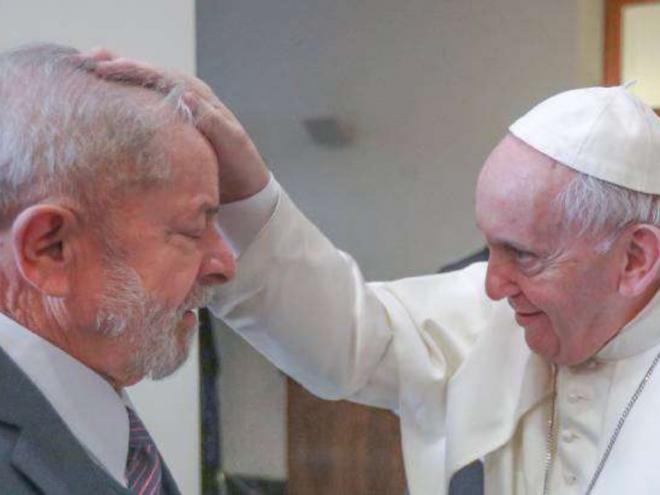 O ex-presidente Luiz Inácio Lula da Silva manteve uma audiência privada, por cerca de uma hora, com o papa Francisco em audiência privada na residência Santa Marta, no Vaticano, acompanhado do ex-chanceler Celso Amorim e do fotógrafo oficial Ricardo Stuckert, que registrou o encontro na quinta-feira (13)