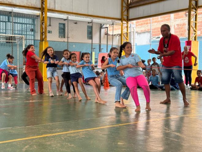 A quadra da Escola Municipal Gercy Benevenuto, no Taúbas, em Ipatinga, foi palco, nesta sexta-feira (11), da 8ª edição dos Jogos e Brincadeiras Indígenas Oryai