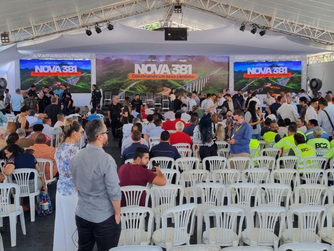 Os presidentes da Associação Comercial, Industrial, Agropecuária e de Prestação de Serviços de Ipatinga (Aciapi) e da Câmara de Dirigentes Lojistas (CDL) de Ipatinga, Luís Henrique Alves e Cláudio Zambaldi, comemoram a entrega do trecho da BR-381 para a concessionária Nova 381