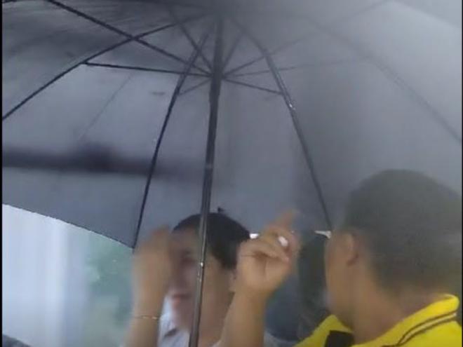 Por causa de uma infiltração no teto de um coletivo que fazia a linha entre os bairros Centro Norte/Bela Vista em Timóteo, passageiros tiveram que usar guarda-chuvas dentro do ônibus, durante a chuva da noite de quinta-feira (24)