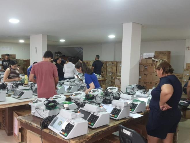 As urnas eletrônicas recebidas pelos cartórios eleitorais passam pela cerimônia de geração das mídias com os dados oficiais para as zonas eleitorais das Eleições Municipais 2024