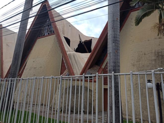 Começou na manhã desta segunda-feira (16) a demolição do teto da Co-Catedral de São Sebastião