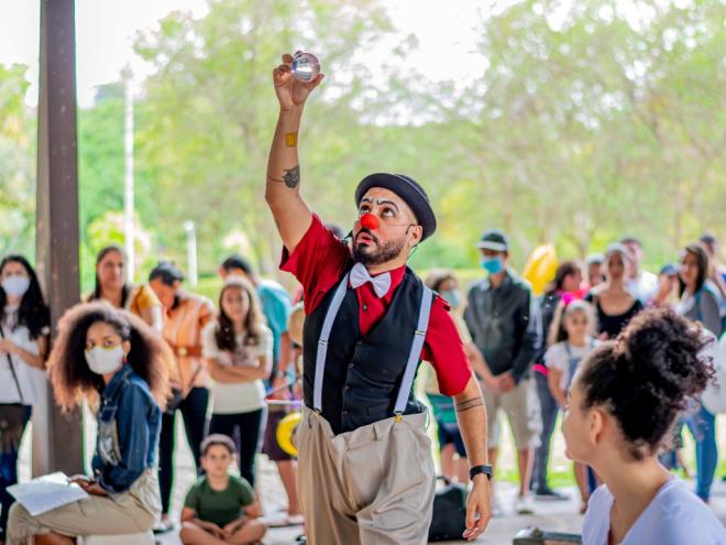 O projeto Catavento chega às praças com o espetáculo Palhaço de Casa não Faz Milagre”