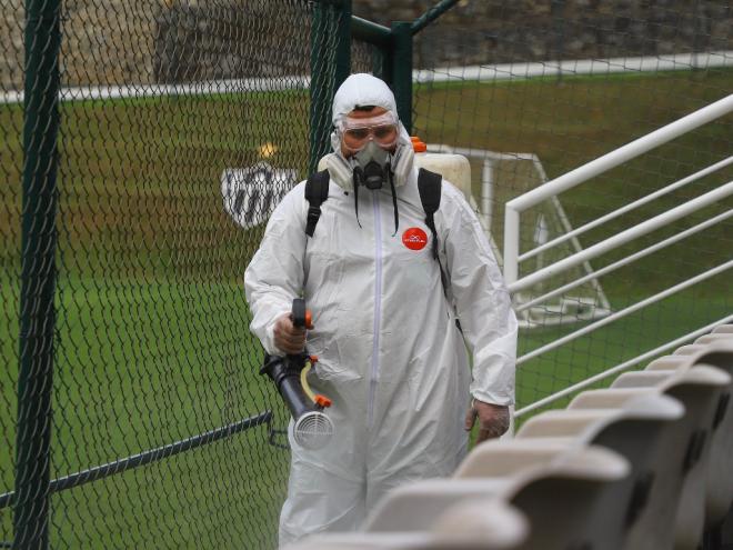 Diversos profissionais, munidos de produtos de limpeza, percorreram a academia, área de convivência, setor de fisioterapia, o campo de treinamento e demais locais do CT