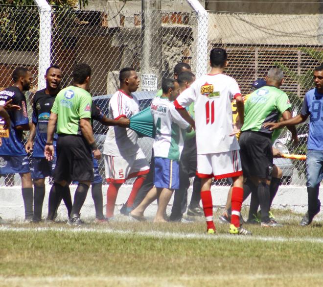Após marcação de um pênalti para o Vale do Aço, houve a paralisação por 35 minutos até a chegada de policiamento
