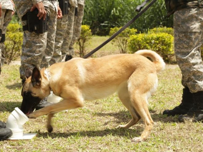 Cães começam a treinar com os agentes desde filhotes para aprenderem a obedecer aos comandos; animais ajudam em trabalhos de contenção e nas buscas por ilícitos