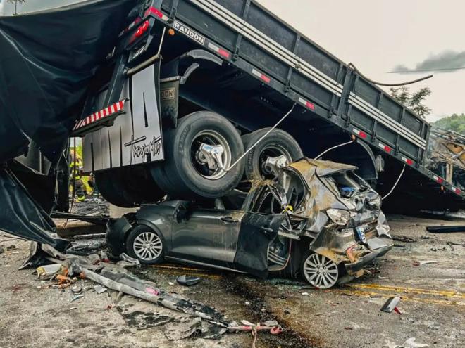 Com informações da Agência Brasil e PCMG Um acidente entre um carro, um ônibus e um caminhão que tracionava uma carreta bitrem carregado com dois blocos de granito, ocorrido na BR-116 em Teófilo Otoni, no Vale do Mucuri, na madrugada deste sábado (21), deixou 41 mortos
