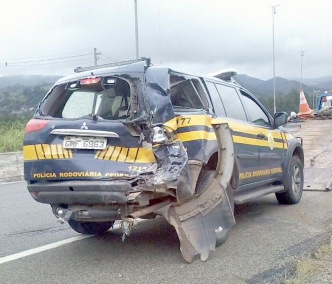 Equipe da PRF atendia acidente em Nova Era, quando viatura foi atingida por caminhão sem controle
