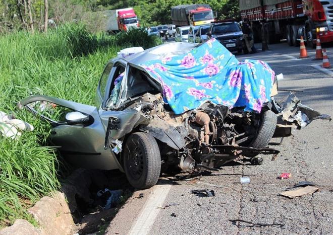 Motorista de Palio invadiu a contramão e atingiu caminhão-taque na BR-381 em São Gonçalo do Rio Abaixo