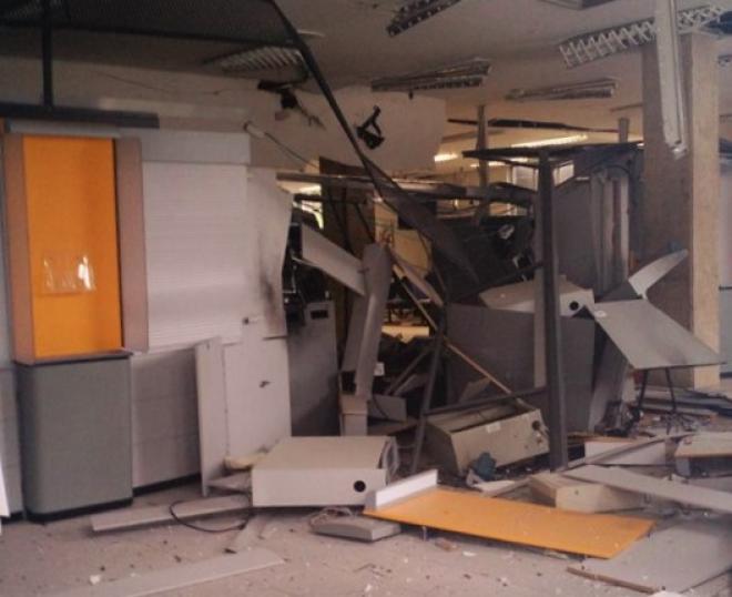 Usando picape roubada em Raul Soares, trio criminoso destruiu quase toda a agência bancária; carro foi abandonado em Abre Campo