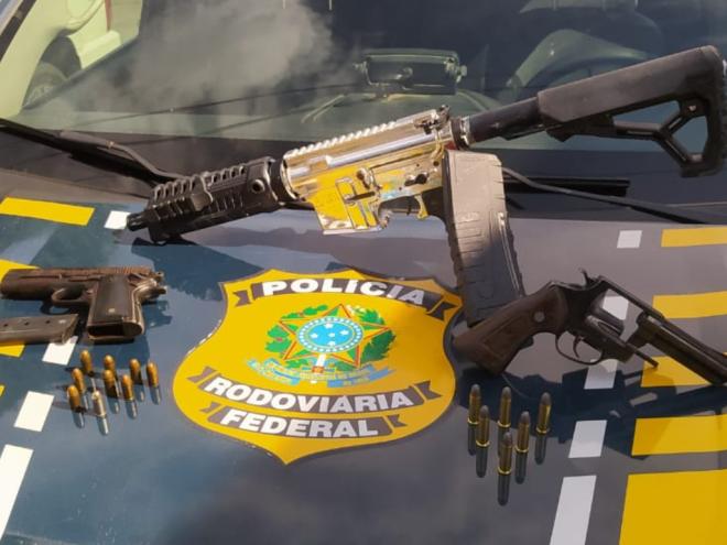 Na manhã deste sábado (5), a Polícia Rodoviária Federal (PRF) apreendeu um fuzil calibre