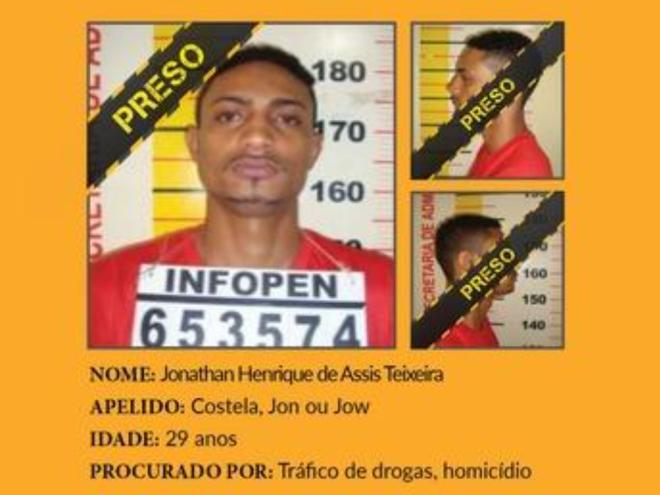 Uma ação integrada do Ministério Público de Minas Gerais (MPMG), da Diretoria de Inteligência (Dint) e do Comando de Aviação do Estado (Comave), ambos da Polícia Militar de Minas Gerais (PMMG), com o apoio da Polícia Militar da Bahia (PMBA), resultou na prisão de Jonathan Henrique de Assis Teixeira, de 30 anos, foragido de alta periculosidade integrante da lista do Procura-se", que congrega os criminosos mais procurados de Minas Gerais