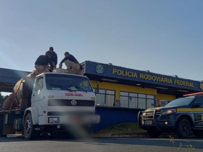 Droga avaliada em mais de R$11 milhões estava escondida dentro de uma caixa dágua transportada por um caminhão