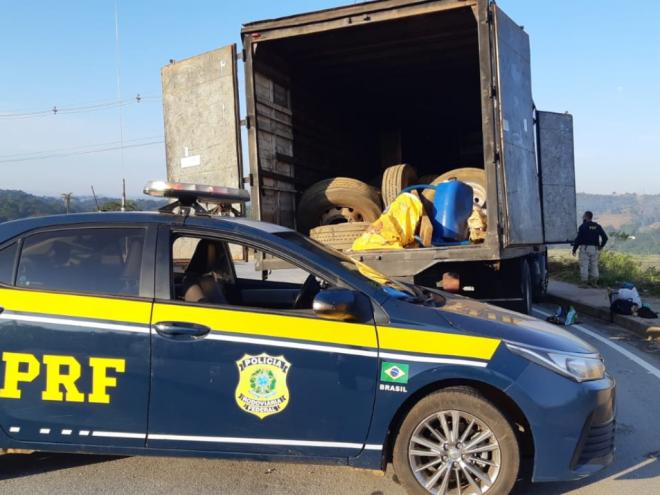 Três pessoas foram presas e carga de pneus foi recuperada pela Polícia Rodoviária Federal
