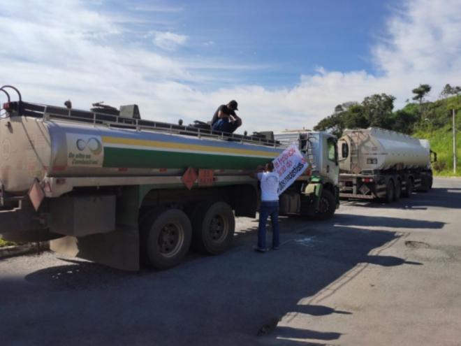Motoristas dos caminhões que transportam combustíveis fizeram uma manifestação em frente a portaria 3 da Fiat, em Betim, na Região Metropolitana de Belo Horizonte, e em seguida saíram em carreata rumo à Cidade Administrativa, na manhã desta quinta-feira (25)