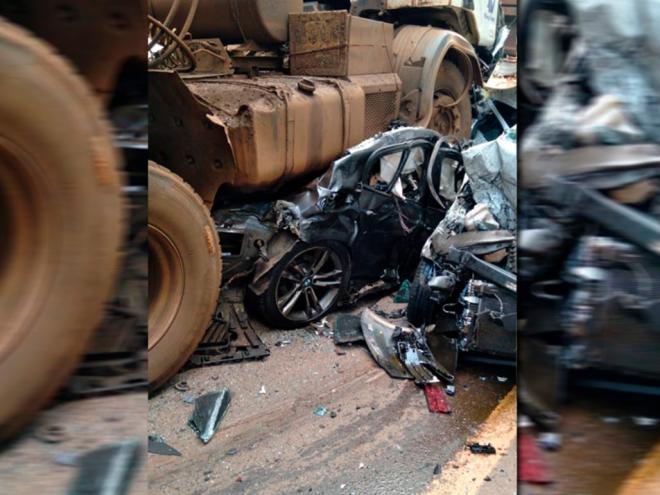 Um acidente de trânsito envolveu dois caminhões que puxavam carretas e três veículos de passeio no trecho da BR-040, em Congonhas