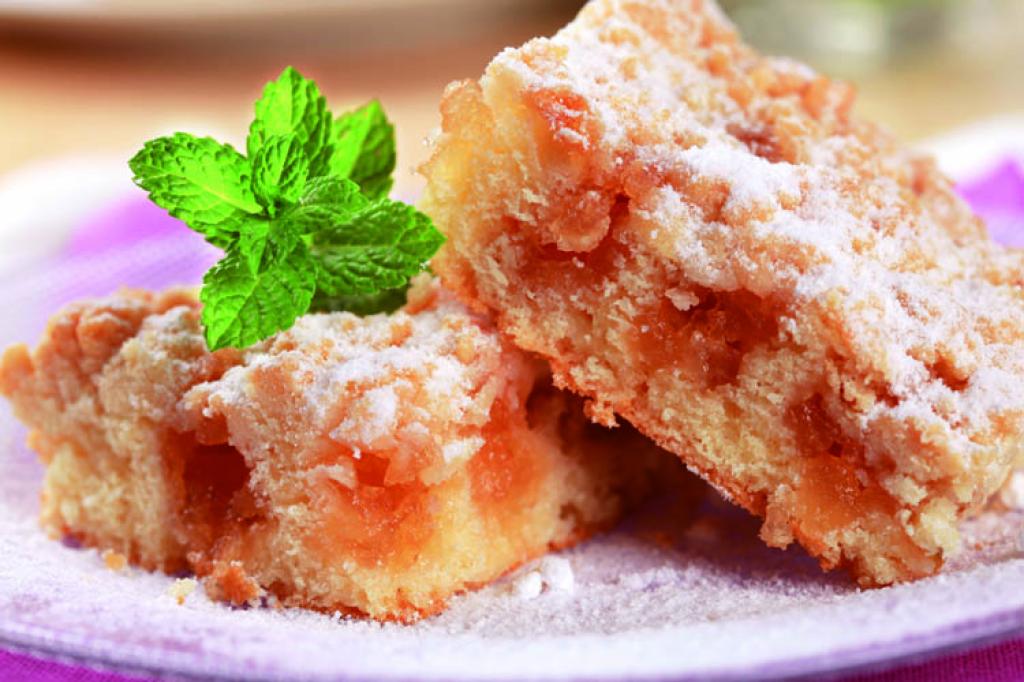 Salpique sobre as maçãs. Despeje o suco de laranja por cima. Para a cobertura, misture meia xícara de açúcar, a manteiga ou margarina e meia xícara de farinha de trigo.