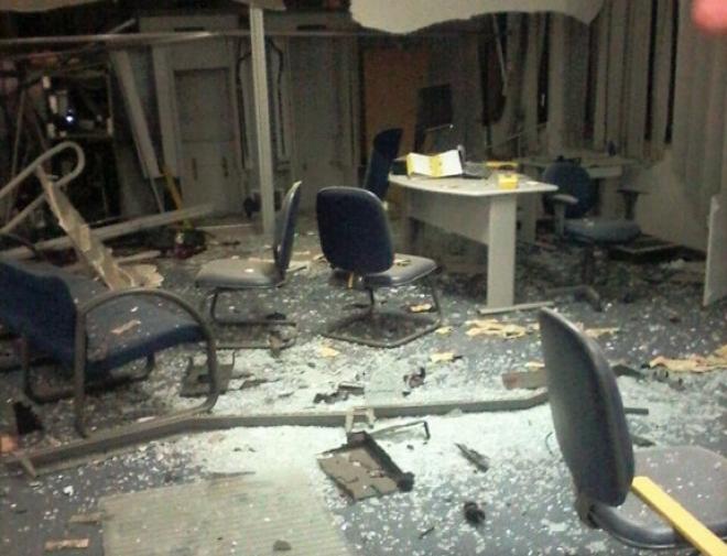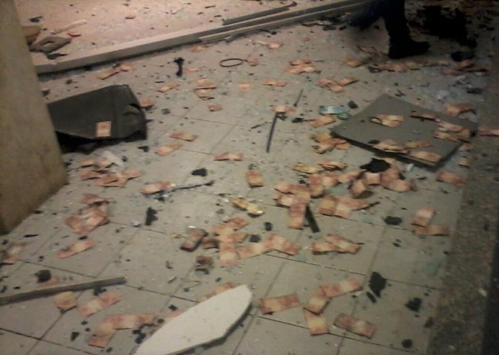 A explosão destruiu quase toda a agência, quebrando vidros, móveis e provocando muita destruição. Centenas de cédulas de R$ 10 ficaram espalhadas pelo chão em meio aos destroços.