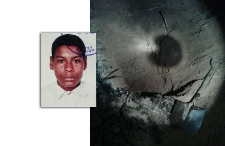 Policiais retornaram ao local e encontraram, em um ponto da propriedade da suspeita, uma área com mato queimado e terra remexida. Munidos com ferramentas os policiais começaram a cavar e encontraram partes do corpo. A perícia da Polícia Civil foi acionada, compareceu ao local e verificou que a vítima foi assassinada com 15 golpes de facão e, em seguida, enterrada.