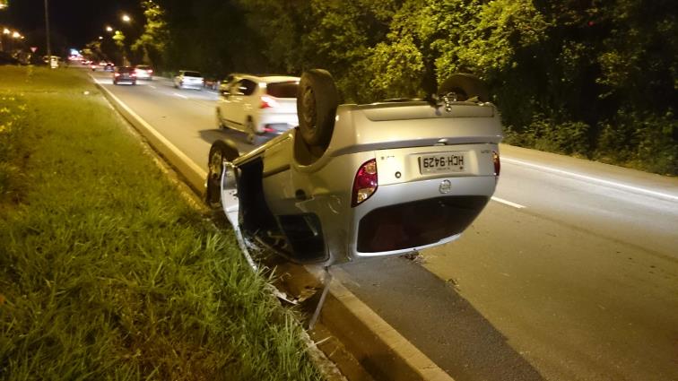 Duas pessoas feridas, uma moto tombada e um Celta e um Classic capotados