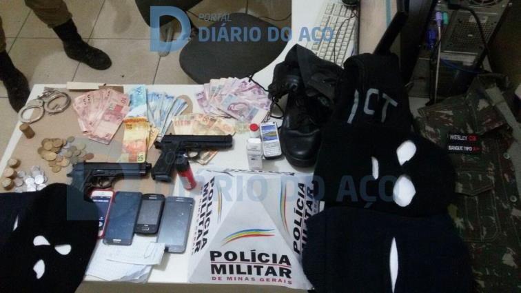 Em poder dos autores, os policiais militares que participaram da operação no cerco apreenderam duas réplicas de pistola, quatro toucas, quatro celulares, R$ 1.051,30 e ainda outros objetos, como uma farda do Exército Brasileiro, par de algemas, de coturno, spray de pimenta.