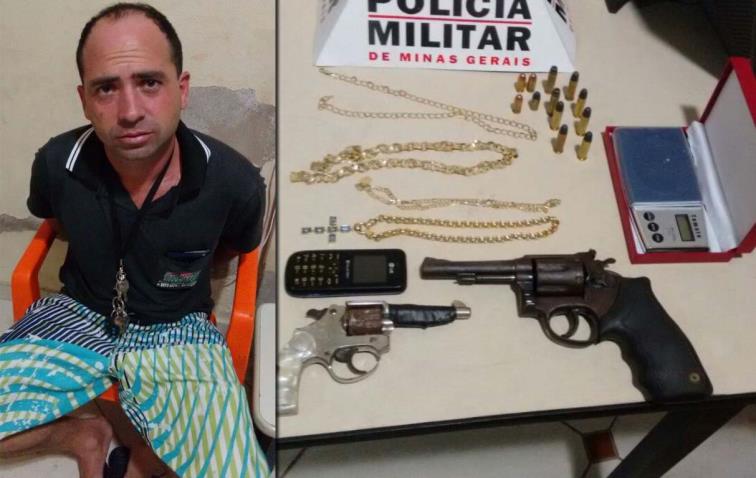 Caio Greich Trevenzoli Ferreira, de 31 anos. No local, policiais localizaram munições de armas calibres 38, 380, quatro cordões de ouro, uma pulseira dourada, uma balança de precisão, um revólver calibre 38, oxidado com coronha de borracha, um revólver Rossi niquelado, calibre 22, com coronha branca.