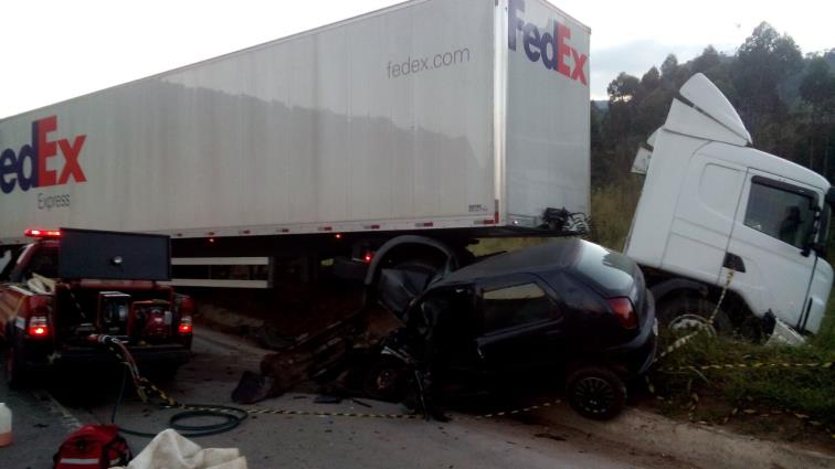 O acidente aconteceu na madrugada deste sábado, quando o Palio, com placas de Bom Jesus do Galho, colidiu com a carreta no KM 534 da BR-116, trecho entre os municípios de Caratinga e Santa Rita de Minas.
