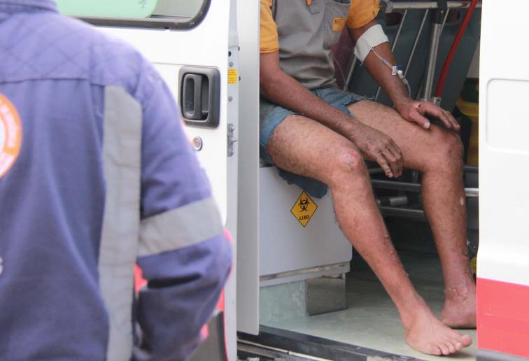 Ajudante que provou o fogo e colega de trabalho estão na UTI do HMC. Outros três têm quadro estável.