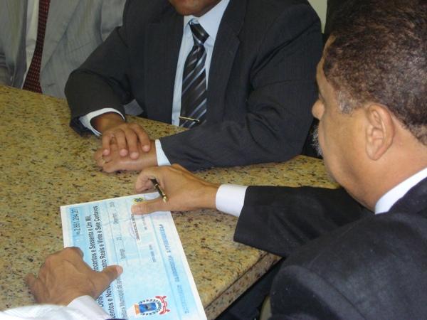 Ao receber o cheque, o prefeito Robson Gomes destacou o bom relacionamento entre os Poderes na cidade e se comprometeu a executar as obras indicadas pelos vereadores.