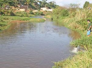 Trecho do ribeirão Ipanema no bairro Limoeiro onde moradores denunciam a presença de agentes poluidores