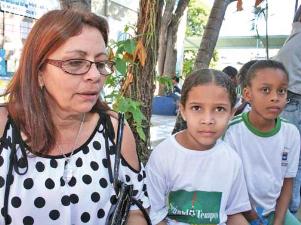 A professora alfabetizadora da E.M. Márcio Andrade Guerra, Eliana de Oliveira e Sá, e os alunos Enmarlon Fernandes de Oliveira e Tallison Andrade Rodrigues