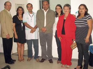 Anchieta Poggiali (GRS), o prefeito Tenório e a equipe do Farmácia de Minas em Antônio Dias
