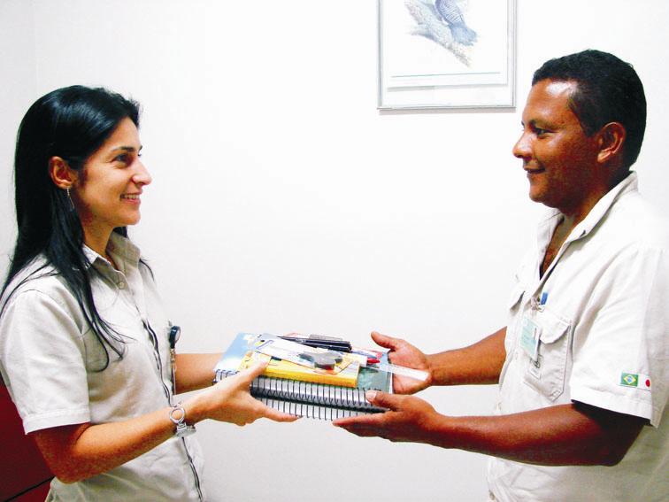 A Cenibra distribui, neste mês de janeiro, os kits de material escolar para os empregados e dependentes legais que estiverem cursando o 1º ou 2º graus. Com o Programa Distribuição de Material Escolar, a empresa incentiva os estudantes, que começam o ano letivo com materiais de primeira qualidade, e também os pais, que ficam livres da correria e das despesas das compras.