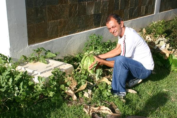 DA REDAÇÃO - Há cerca de 50 dias, o vigilante Lauro Antônio de Souza notou o aparecimento de um ramo de melancia no jardim da Biblioteca Pública Municipal Raquel Pacífico Drumond, em Timóteo.