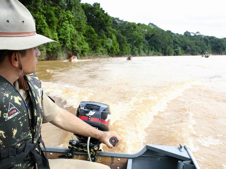Durante a caravana, aproveitamos a ocasião para mostrar como é a realidade das águas fiscalizadas em patrulhamento aquático pela Companhia. Às margens do rio, principalmente na cachoeira de Santana, promovemos a remoção de parte do lixo”, resume a sargento Kátia.