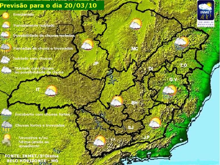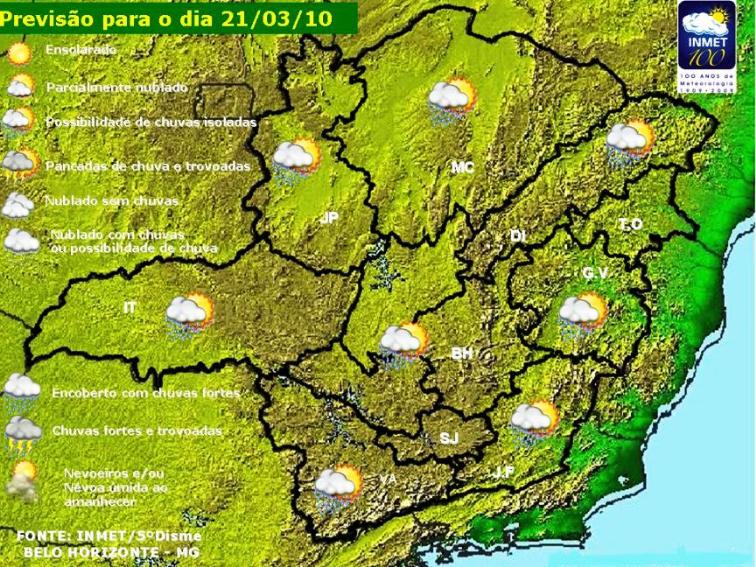 A temperatura fica entre a mínima de 21 e a máxima de 36 graus. Confira abaixo o tempo neste fim de semana nas regiões mineiras: