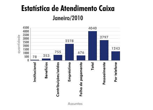 Com 37 anos de existência, a Caixa tinha, em janeiro de 2010 cerca de 20.140 participantes atuantes. Veja no gráfico abaixo a estatística dos assistidos pela Caixa dos Empregados da Usiminas.