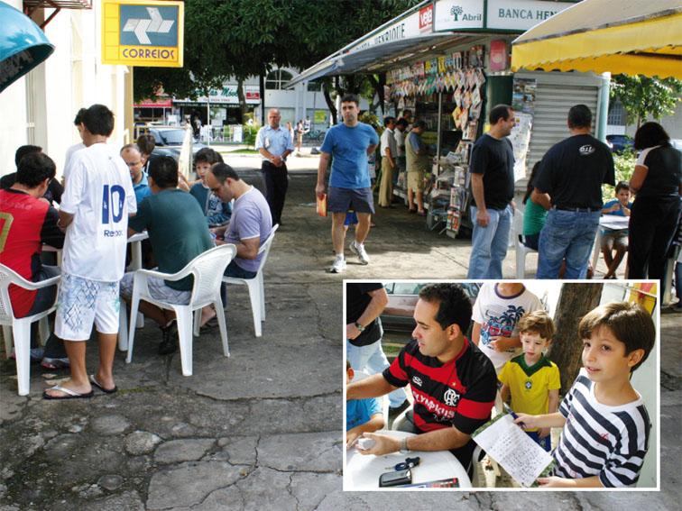 Não precisa pagar nem comprar nada na banca. Basta chegar, se enturmar com os participantes e trocar as figurinhas. A ideia surgiu há cerca de um mês, logo que os álbuns foram lançados. O espaço aberto funciona das 9h às 12h. Gustavo Guimarães Rocha Figueiredo, de 10 anos, não perde uma manhã de troca de figurinha. Acompanhado pelo pai, Gustavo tem tanto zelo com a coleção que nem leva o álbum para a rua.