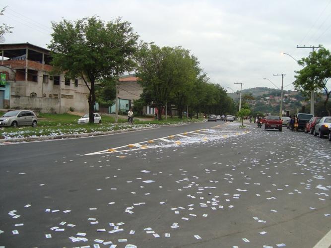 Ipatinga amanheceu com suas principais ruas sujas, neste domingo. No entorno das seções eleitorais milhares de exemplares de material gráfico de candidatos poluem as ruas. Independente do resultado, nesta segunda-feira, os varredores de rua terão trabalho em dobro para devolver a limpeza à cidade.