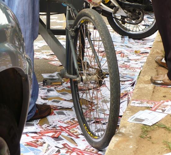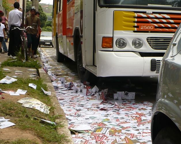 A leitora do DIÁRIO DO AÇO no bairro Amaro Lanari, Cláudia Scarpat Ladeira, envia mensagem eletrônica em que mostra sua indignação contra a sujeira que pelo menos uma das coliugações promoveu no bairro da cidade vizinha.