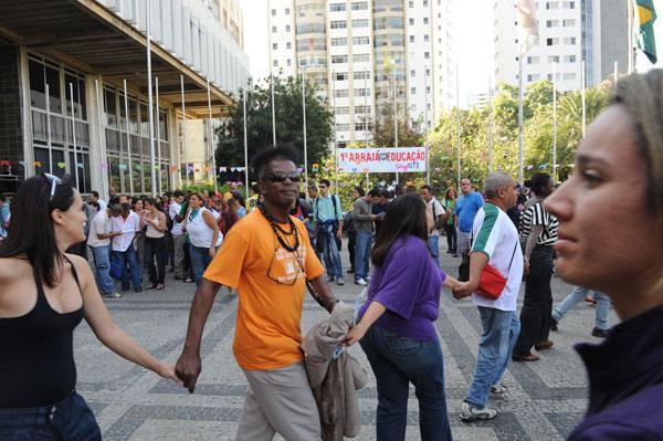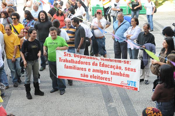 Os professores passaram a terça-feira na Assembleia Legislativa de Minas Gerais, a exigir que os deputados alterem o Projeto de Lei 4.689/10, de autoria do governo do estado, propondo modificações no plano de carreira da categoria.