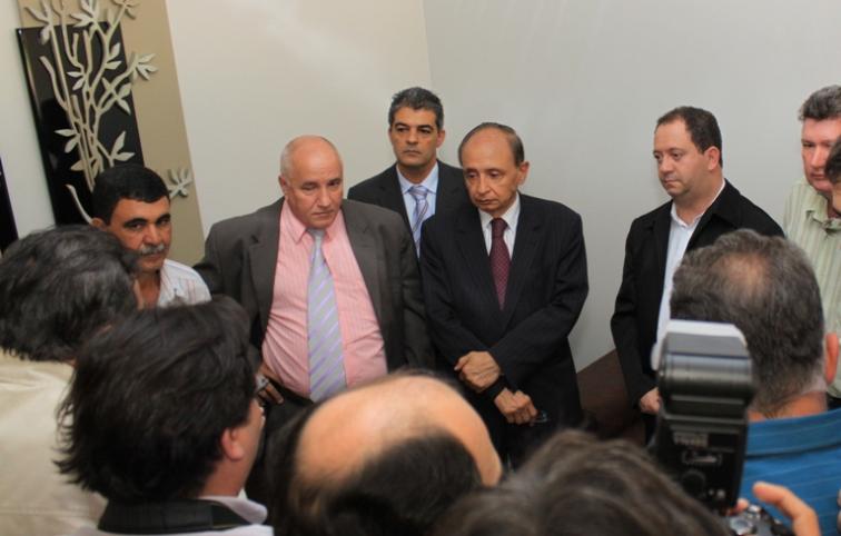 PARAÍSO - Após a visita ao Conjunto Habitacional no Parque Caravelas, na manhã desta quarta-feira (30), o ministro das Cidades, Márcio Fortes, recebeu em audiência prefeitos da região, em uma sala no aeroporto da Usiminas.