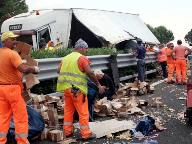DA REDAÇÃO - Um caminhão com 2 milhões de euros em moeda bateu no sudoeste da Itália e espalhou todo o dinheiro pela rodovia. Motoristas que viram a fortuna ir pelos ares pararam seus carros para recolher o dinheiro.
