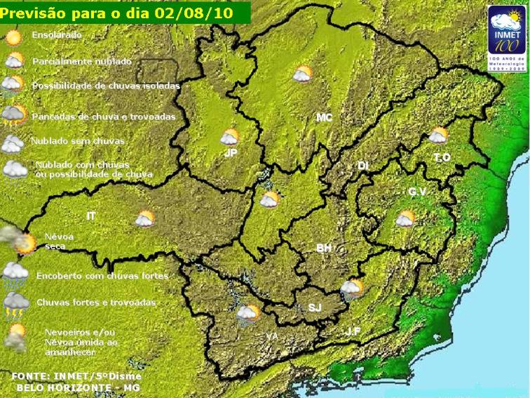 A segunda-feira será de tempo estável com domínio de Sol entre poucas nuvens em Minas Gerais, devido à atuação da massa de ar seco.