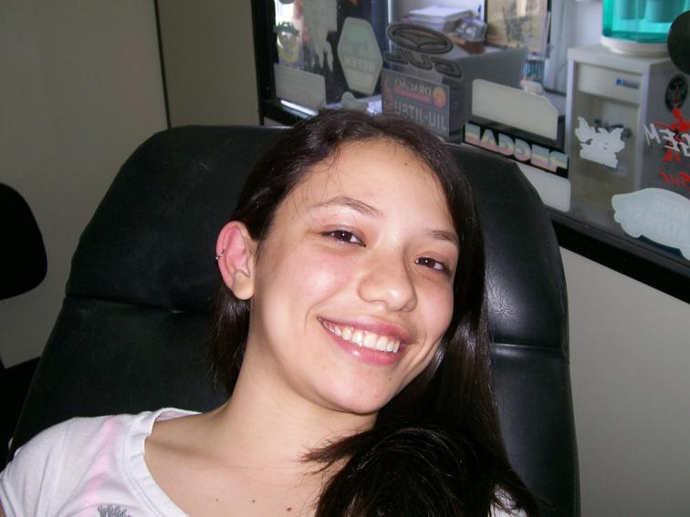 Queria fazer o piercing há muito tempo e, como era na orelha, minha mãe deixou de primeira. Não doeu, só ardeu um pouco”, relatou a adolescente, feliz da vida. Depois de receber as orientações sobre os cuidados necessários, mãe e filha concordaram em registrar o momento histórico para a posteridade”.