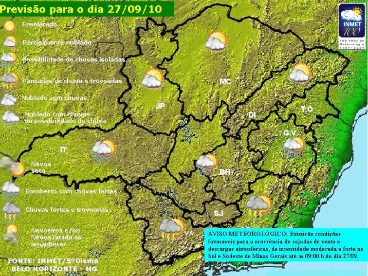A disponibilidade de umidade e o forte aquecimento superficial propiciam condições de ocorrência de chuvas também sobre o Centro, Leste e Oeste do Estado.