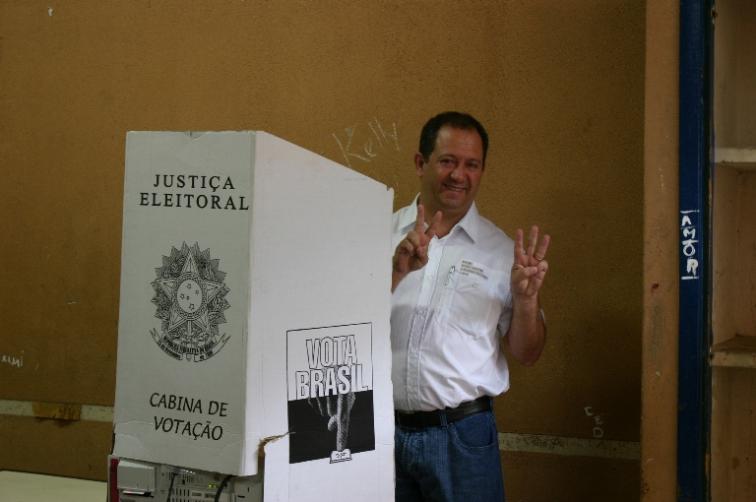 Na mesma escola o prefeito Geraldo Hilário votava no fim da manhã e aproveitava a longa espera na fila para conversar com a população presente.