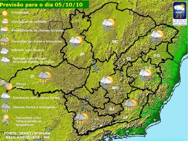 DA REDAÇÃO - A terça-feira será mais um dia com muita nebulosidade e pancadas de chuva, no Centro-Sul e Oeste de Minas Gerais.Uma área de baixa pressão próxima ao litoral da Região Sudeste, entre São Paulo e Rio de Janeiro, favorece a manutenção de instabilidades nestes setores do Estado.