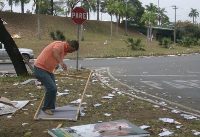 Após reclamação geral dos eleitores contra o material de campanha despejado nas ruas, lixo será retirado gradativamente