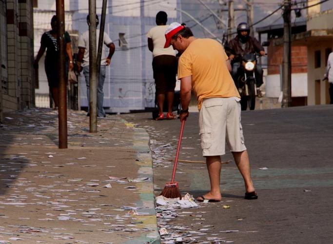 O serviço de varrição segue a programação normal. Com isso, as ruas serão limpas gradativamente, na medida em que as equipes seguirem a programação e atingirem as ruas tomadas pelos papéis da propaganda política.
